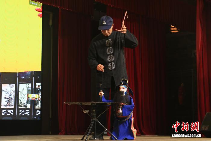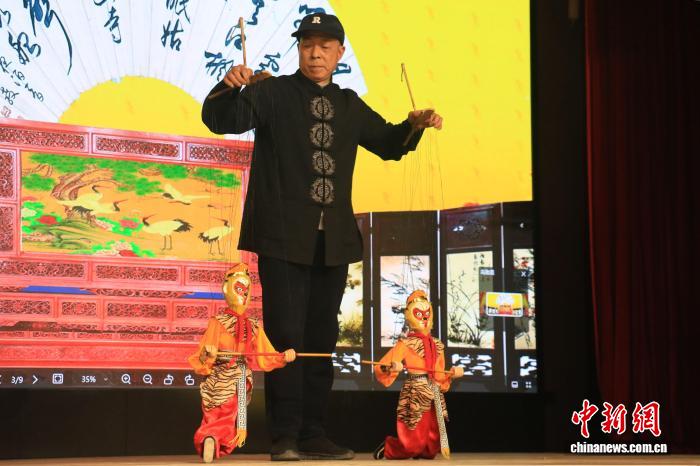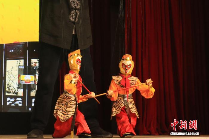 2月18日,正在廊桥文明园内乱,上演者支配提线木奇演出“实假好猴王”。吴怡欣 摄